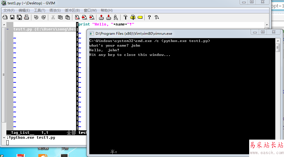 name = raw_input("what's your name?")print "Hello, "+name+"!保存后,按F12并回車即可完成程序的編譯運行,如下圖: