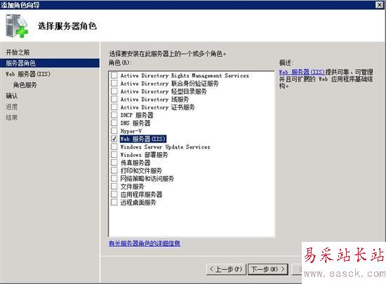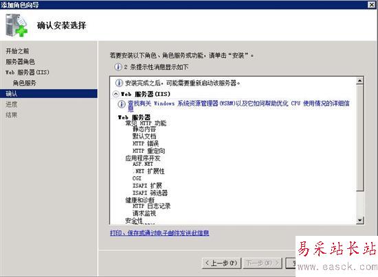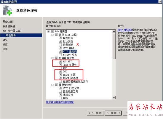 添加ASP.NET 、.NET 擴展性、CGI、ISAPI 擴展、ISAPI 篩選器,去掉 目錄瀏覽(因為大多數網站用不到。)
