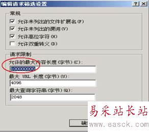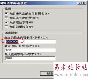 將網(wǎng)站服務(wù)“停止”找到“請(qǐng)求篩選”對(duì)“允許的最大內(nèi)容長(zhǎng)度”進(jìn)行修改
