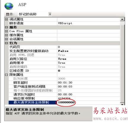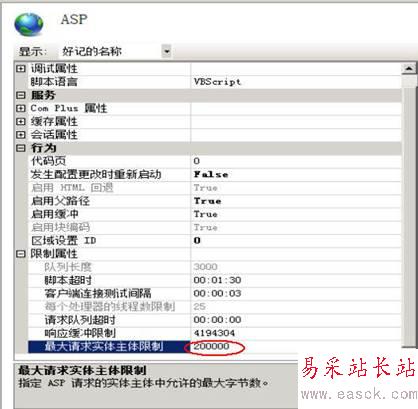 點(diǎn)屬性,找到“最大請(qǐng)求實(shí)體主體限制”默認(rèn)值為”200000”即200K,不能滿足上傳文件的需要,要進(jìn)行更改。
