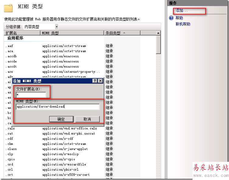 MIME Type中填寫的信息還會影響服務(wù)器返回給客戶端數(shù)據(jù)時(shí)HTTP頭部Content-Type的內(nèi)容。這個(gè)內(nèi)容可以讓客戶端知道傳輸?shù)氖鞘裁葱畔ⅲ撚檬裁闯绦騺泶蜷_。即使傳輸?shù)氖峭粋€(gè)文件,Content-Type不同可能會使客戶端以不同的方式來打開它。如果要讓客戶端提示用戶下載,可以試試application/octet-stream。