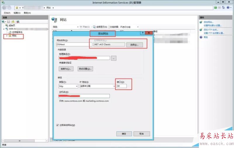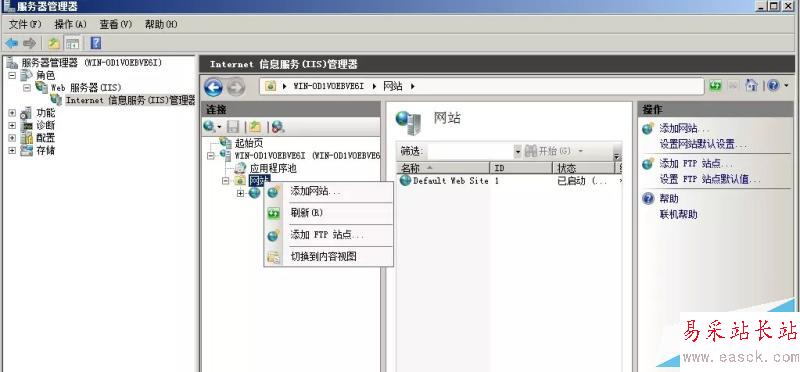 1:在Internet信息服務窗口中選取“網站”,右擊鼠標之后在彈出的菜單里選擇“添加網站”命令開始創建一個Web站點。