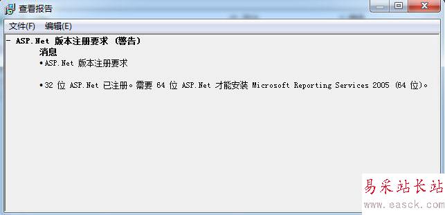 32位的ASP.Net已注冊,需要64位的ASP.Net才能安裝Microsoft Reporting services 2005 (64位)。