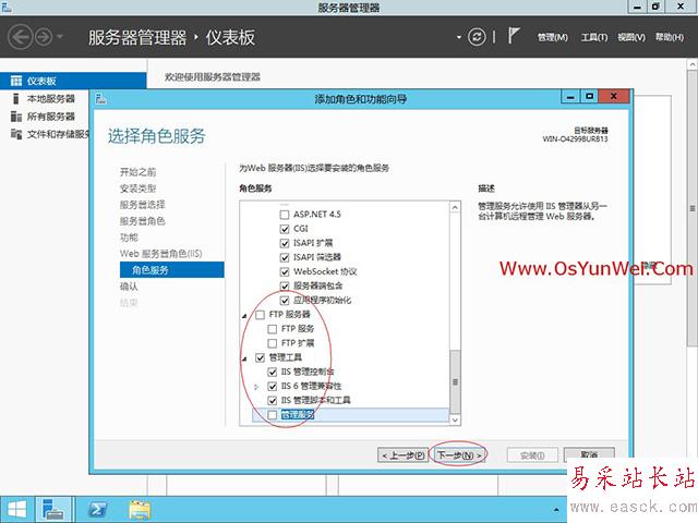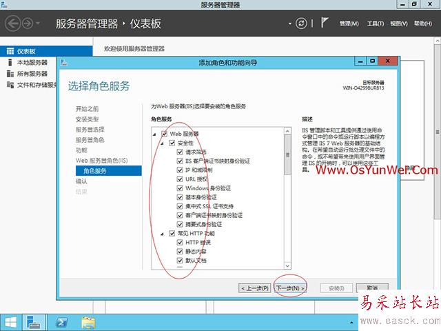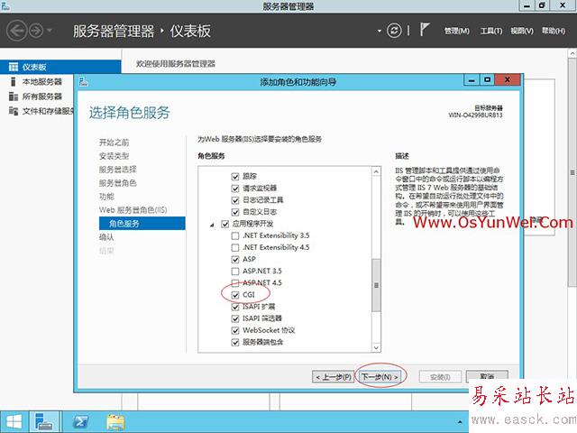 確保CGI被選中,其他的角色服務(wù)根據(jù)需要選擇,如果不知道如何選擇,建議選擇全部功能。