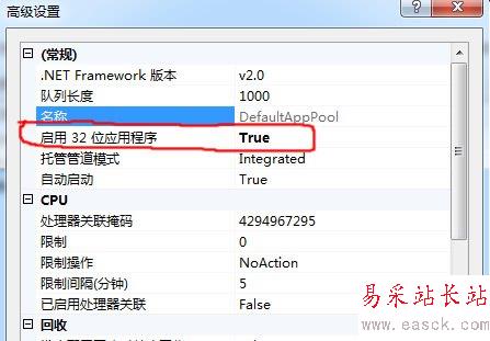 修改應(yīng)用程序池的“高級設(shè)置”。