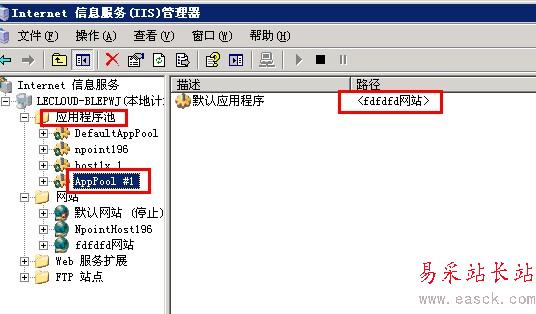 3. 如下圖 已經轉移成功。網站fdfdfd已經在 Apppool #1 這個應用程序池里了。ok