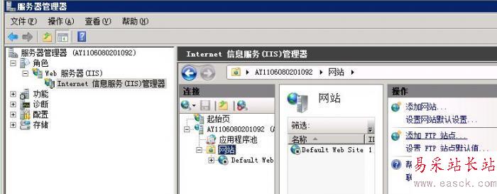 選擇左側連接中的“網站”,點擊右側操作窗口中的“添加FTP站點”;