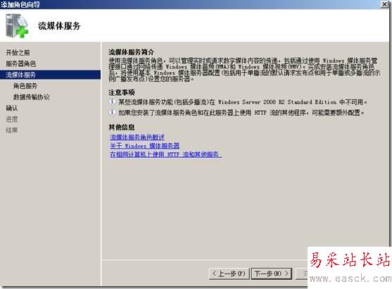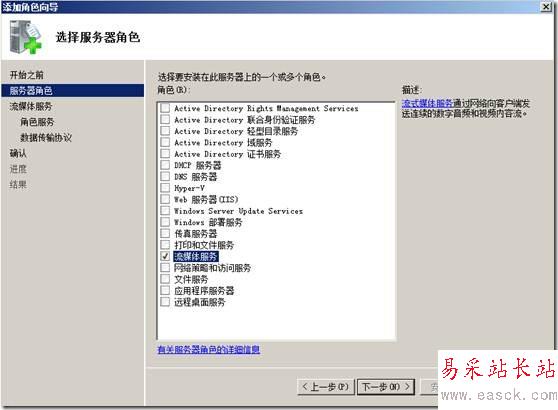 在服務器管理角色里選擇“流媒體服務器”,下一步