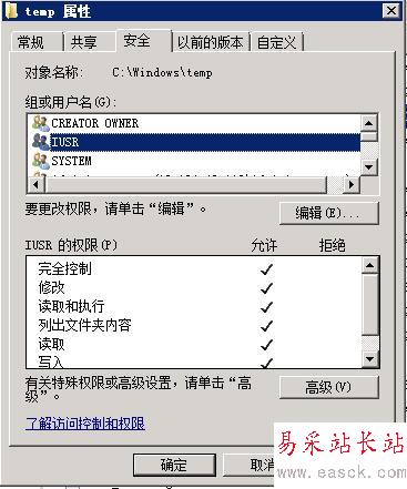 4. 給 C:/Window/Temp 目錄,設置IUSR讀寫權(quán)限,解決(Microsoft JET Database Engine 錯誤 '80004005')錯誤。