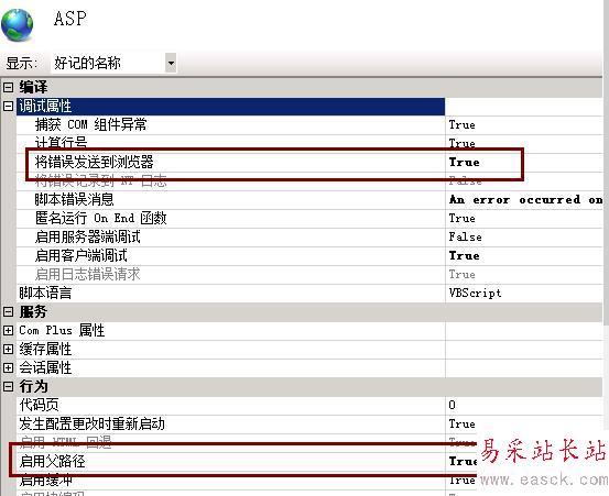 1、雙擊ASP,調(diào)試屬性,“將錯誤發(fā)送到瀏覽器”改為TRUE