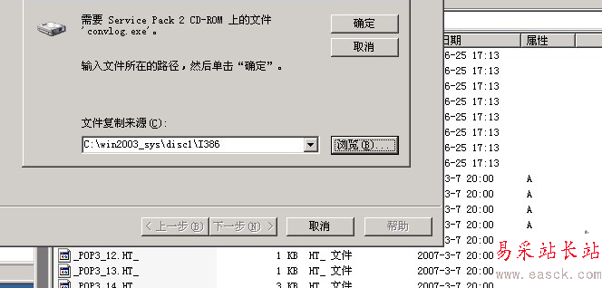 點擊圖片中的“瀏覽”選中“c:/win2003_sys/disc1/i386”如圖