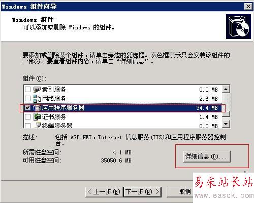 出現上面的圖片“選中internet 信息服務(iis)” 點擊圖片中的“詳細信息”