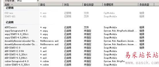 接下來配置應用程序映射。選中站點,打開處理程序映射界面。