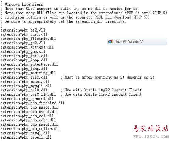 “extension=php_gd2.dll”“extension=php_mbstring.dll”“extension=php_mcrypt.dll”“extension=php_mysql.dll”“extension=php_pdo_mysql.dll”