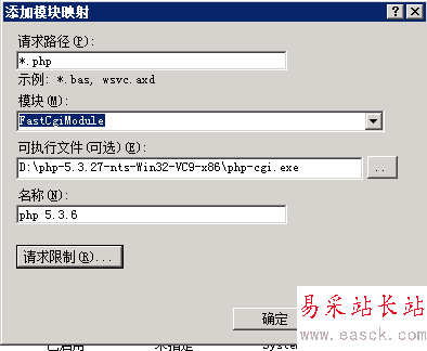 這里還需要注意的是,iis進程必須有對php程序目錄的訪問、執行權限。