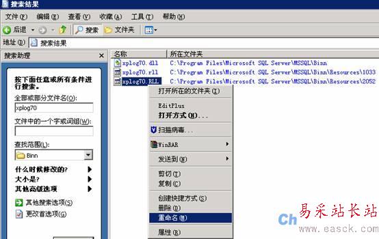 4、安裝好SQL后進(jìn)入目錄搜索 xplog70 然后將找到的三個(gè)文件改名或者刪除。