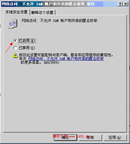 管理工具->本地安全設置->本地策略->安全選項->網絡訪問: 不允許 SAM 賬戶和共享的匿名枚舉
