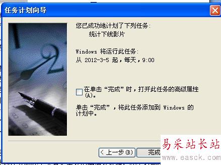 7:單擊“完成”按鈕,”計劃任務“窗口中就加入了一項新任務