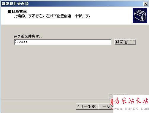6 (如果系統(tǒng)查找到?jīng)]有test這個(gè)共享文件夾,就會(huì)進(jìn)行下個(gè)畫面)下一步----點(diǎn)擊【瀏覽】新建個(gè)test文件