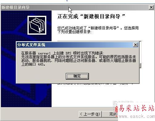 8 點(diǎn)擊【完成】如果你出現(xiàn)下面情況,而無(wú)法完成,則可能是DFS服務(wù)“Distributed File System”這個(gè)服務(wù)沒(méi)有開(kāi)啟。把它啟動(dòng)就可以了。