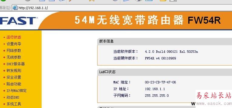 真真的關鍵功能開始了,在這兒我以自己的FAST路由器做為例子。默認fast的管理臺地址是:http://192.168.1.1/,輸入帳號密碼。這個帳號是必須的,如果你不是路由管理員,那你要想些辦法搞到才行。進入管理中心后就是下面這樣: