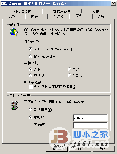 反點我的電腦,管理,服務和應用程序,Microsoft SQL Servers,對著MSSQL反點,安全性,最下面: