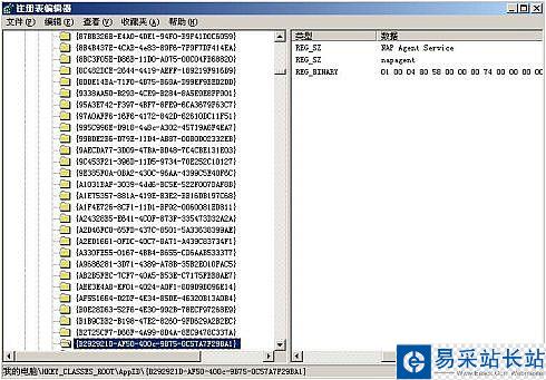 2、重新在注冊(cè)表編輯器里搜索{B292921D-AF50-400c-9B75-0C57A7F29BA1},搜索到后看右邊的方框內(nèi)的默認(rèn)REG_SZ字符串值為NAP Agent Service,這是一個(gè)服務(wù)的名稱(chēng)。