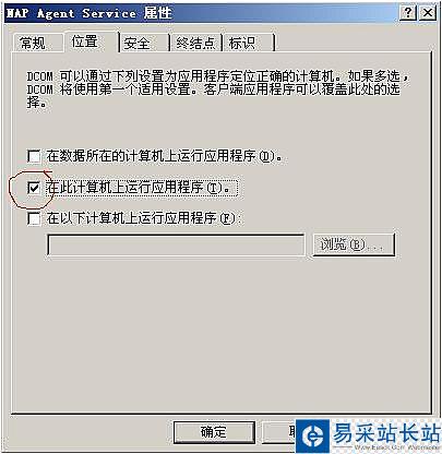 4、右擊屬性-位置,把“在此計(jì)算機(jī)上運(yùn)行應(yīng)用程序”前面的復(fù)選框去掉,即取消此服務(wù)在本機(jī)的運(yùn)行,確定后重啟電腦后解決。