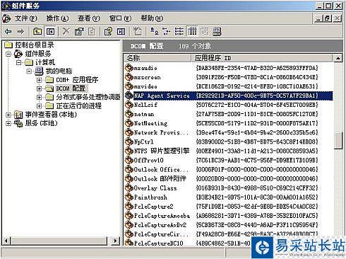 3、然后打開(kāi)控制面板-管理工具-組件服務(wù)(或運(yùn)行這個(gè)程序C:/WINDOWS/system32/Com/comexp.msc),選擇DCOM配置,找到剛才的服務(wù)。