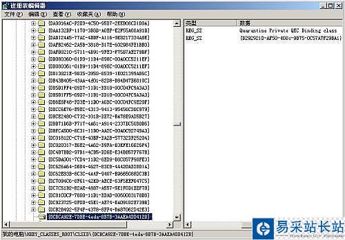 1、運(yùn)行REGEDIT。然后搜索DCBCA92E-7DBE-4EDA-8B7B-3AAEA4DD412B,搜索到后看右邊的方框內(nèi)的AppID的REG_SZ字符串值為{B292921D-AF50-400c-9B75-0C57A7F29BA1}