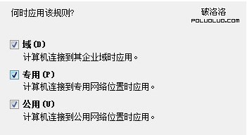下一界面上保持域、專用、公用為選中。然后下一步。