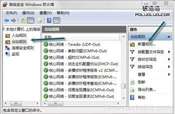 這時會打開一個叫高級安全Windows防火墻的窗口。在左邊選中出站規則,然后在最右邊的窗口操作下面點擊新建規則。