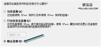 在下一界面上選擇阻止連接,意思是不允許向這個遠程的端口發送數據,也就是把這個端口關閉封掉了。
