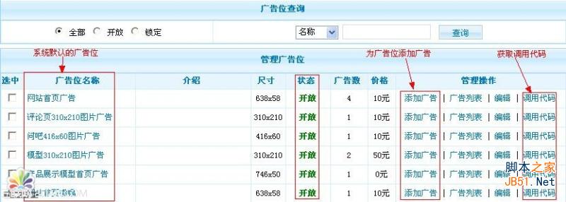 位置:模塊管理---廣告管理---管理廣告位