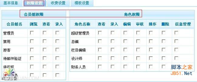 欄目權限設置,有關欄目管理權限、用戶瀏覽權限