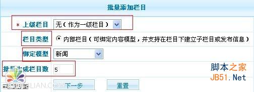 設置欄目的詳細信息,欄目名稱、欄目目錄(欄目內容生成靜態文件存放的目錄)