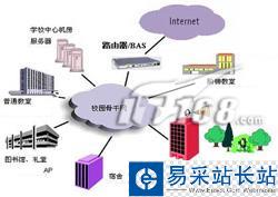 室內無線局域網主要針對不方便進行大規模布線或不宜布設太多信息點的建筑,如:圖書館、辦公大樓、網絡教室、會議室和報告大廳等,典型的無線校園網絡整體解決方案如下: