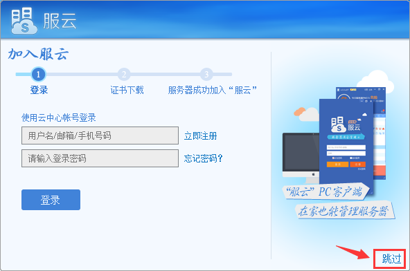 這個時候 點擊 跳過 就可以了(說實話這個個人一般用不到,對于服務器多的倒可以試試)