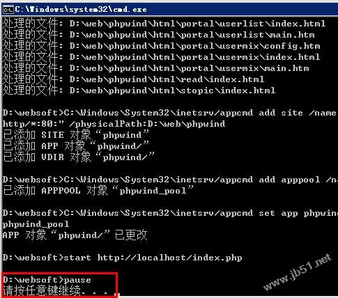 完成后會出現一個命令行界面,不用擔心,上面會提示手動到您安裝的websoft的目錄,執行install.bat