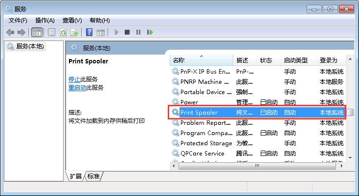 第二步:接著在服務列表中找到Print spooler,發現沒有正在運行。
