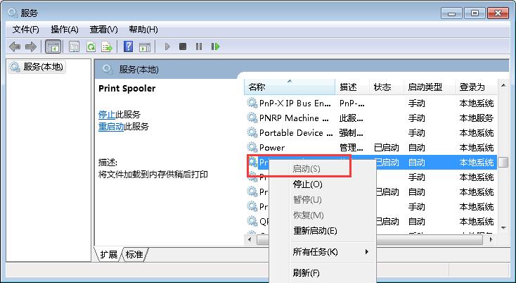 第三步:之后右鍵點擊啟動就可以了,一般這樣就可以打印了(或進入屬性可以更多的設置)。