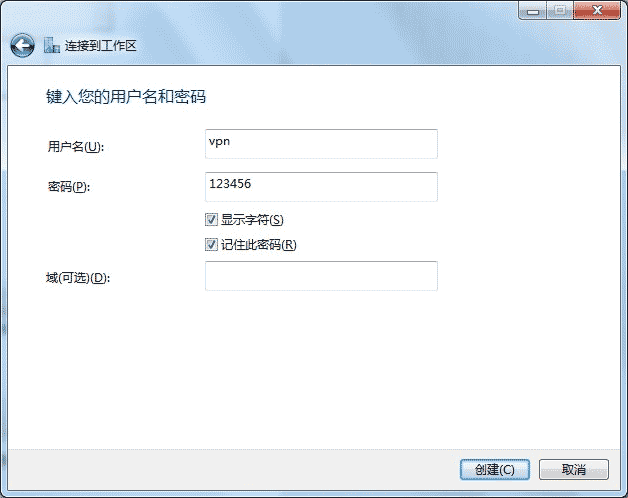 下一步輸入用戶名vpn密碼123456。