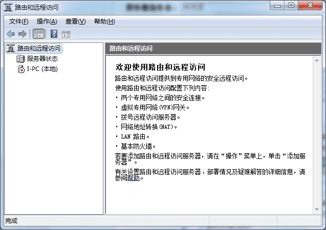 點擊服務器狀態,可看到目前只有一臺服務器(就是本機)。以我的計算機名為I-PC的服務器為例,右擊I-PC并選擇“配置并啟用路由和遠程訪問”打開向導。