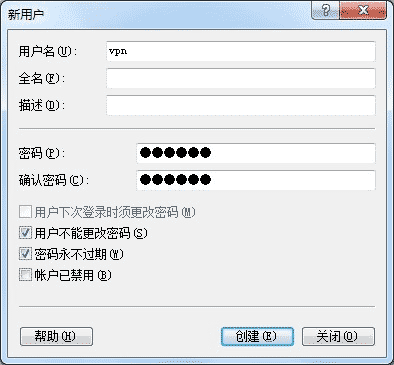 新用戶默認隸屬于Users組。已經具備VPN撥入權限。