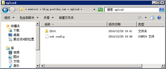 好了,我們打開upload文件夾看一下,是不是多了一個web.config。
