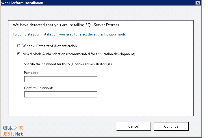 設(shè)置SQL Server管理員密碼后點(diǎn)擊Continue看到: