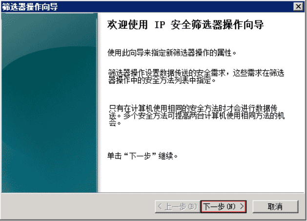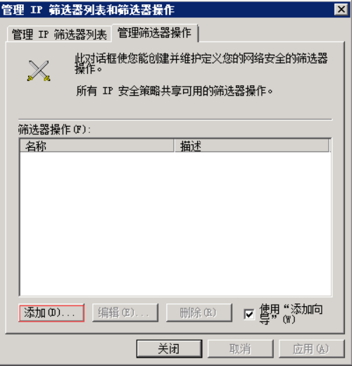 1、在圖2界面,選擇“管理篩選器操作”標(biāo)簽頁面進(jìn)行篩選器操作,然后選擇“添加(D)…”,然后按向?qū)c(diǎn)擊“下一步(N)>”(圖11、12)