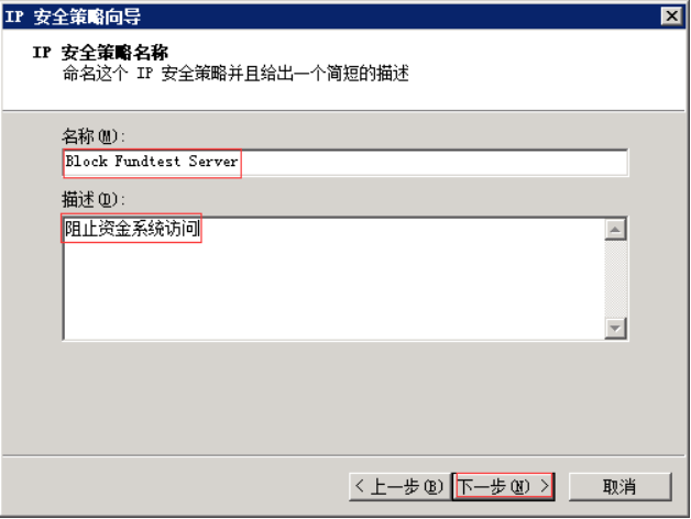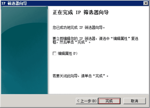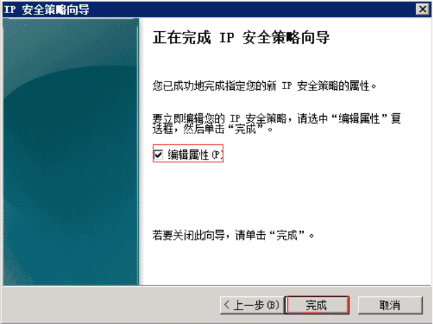 2、接下來在IP安全策略名稱設(shè)置頁面設(shè)置相應(yīng)“名稱”和“描述”(圖19),然后連續(xù)點(diǎn)擊“下一步(N)>”(圖19、20),直至完成(圖21)選擇”編輯屬性(P)”完成后進(jìn)行IP安全策略編輯