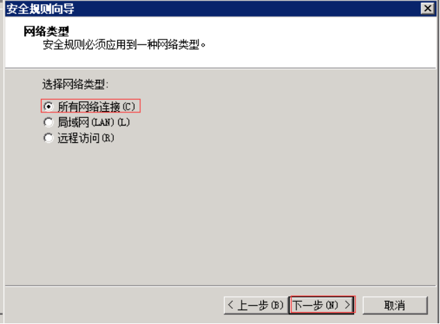 5、接下來在“網(wǎng)絡(luò)類型”頁面選擇“所有網(wǎng)絡(luò)連接(C)”,然后點(diǎn)擊“下一步(N)>”(圖25)