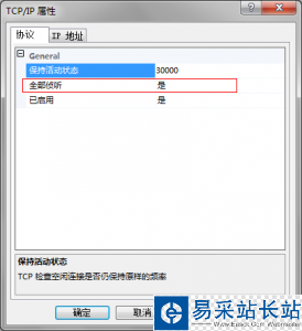 2.點擊TCP/IP協(xié)議,在協(xié)議一欄中,找到 全部偵聽,修改為否